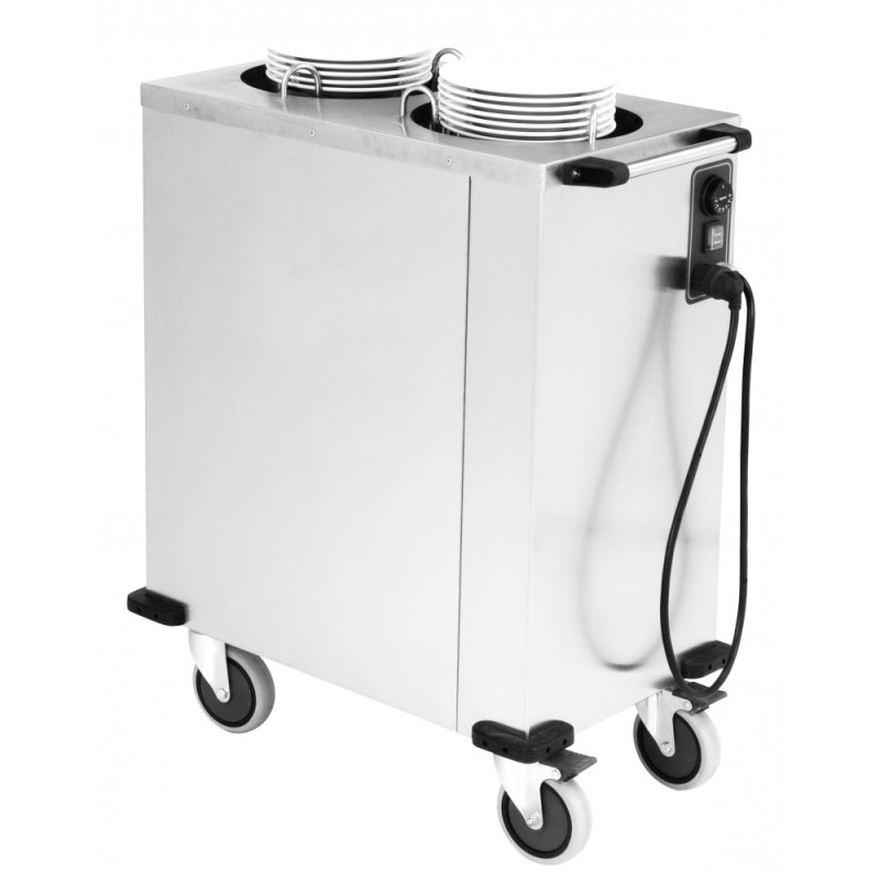 Ανοξείδωτο τροχήλατο dispenser πιάτων για μεταφορά, αποθήκευση πιάτων και για σερβίρισμα στο σωστό ύψος εργασίας. Χρήση σε κρύο ή ζεστό μπουφέ, σε συστήματα self service καθώς και γραμμές προετοιμασίας φαγητού. Τα πιάτα ανεβαίνουν στο ύψος με τη χρήση ελατηρίων.