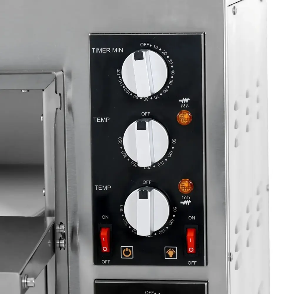 • Με ξεχωριστή αντίσταση πάνω και κάτω στον κάθε θάλαμο, για μέγιστη θερμότητα & ισορροπημένο αποτέλεσμα ψησίματος.