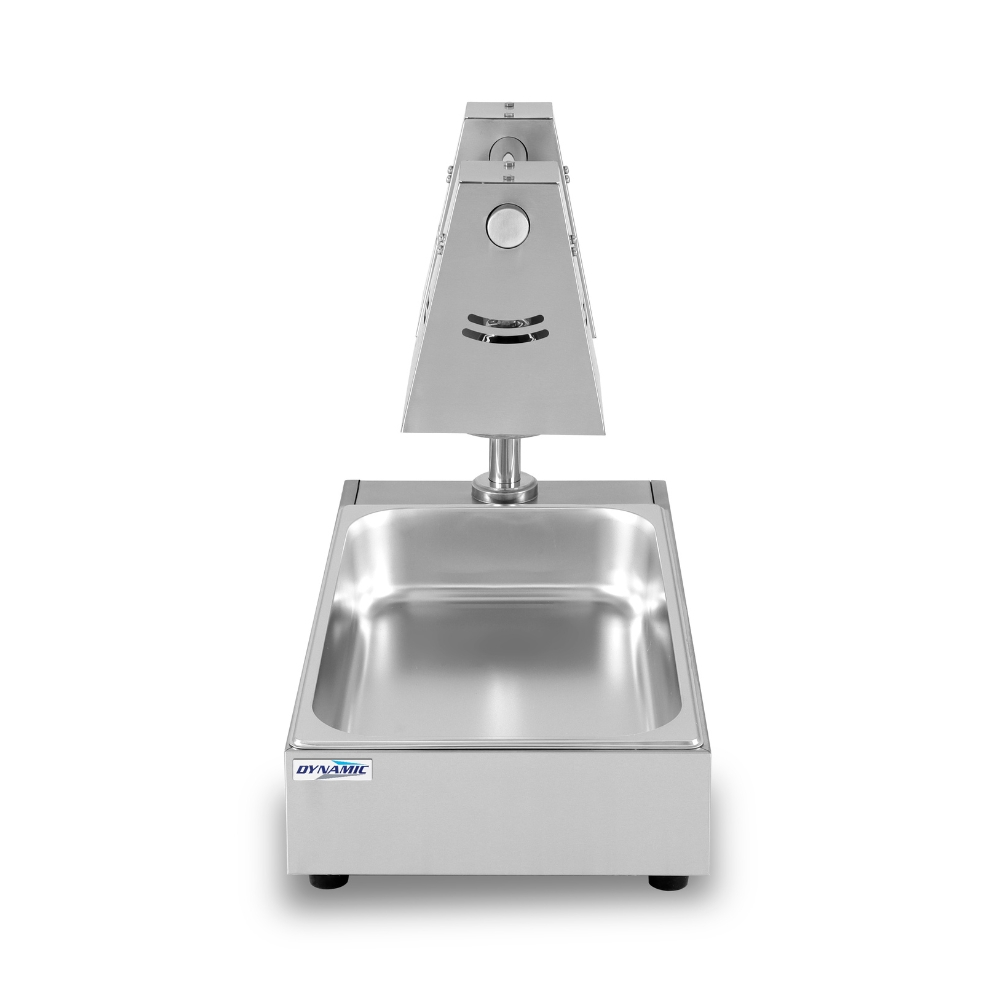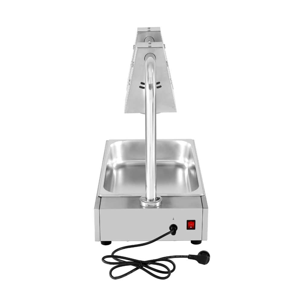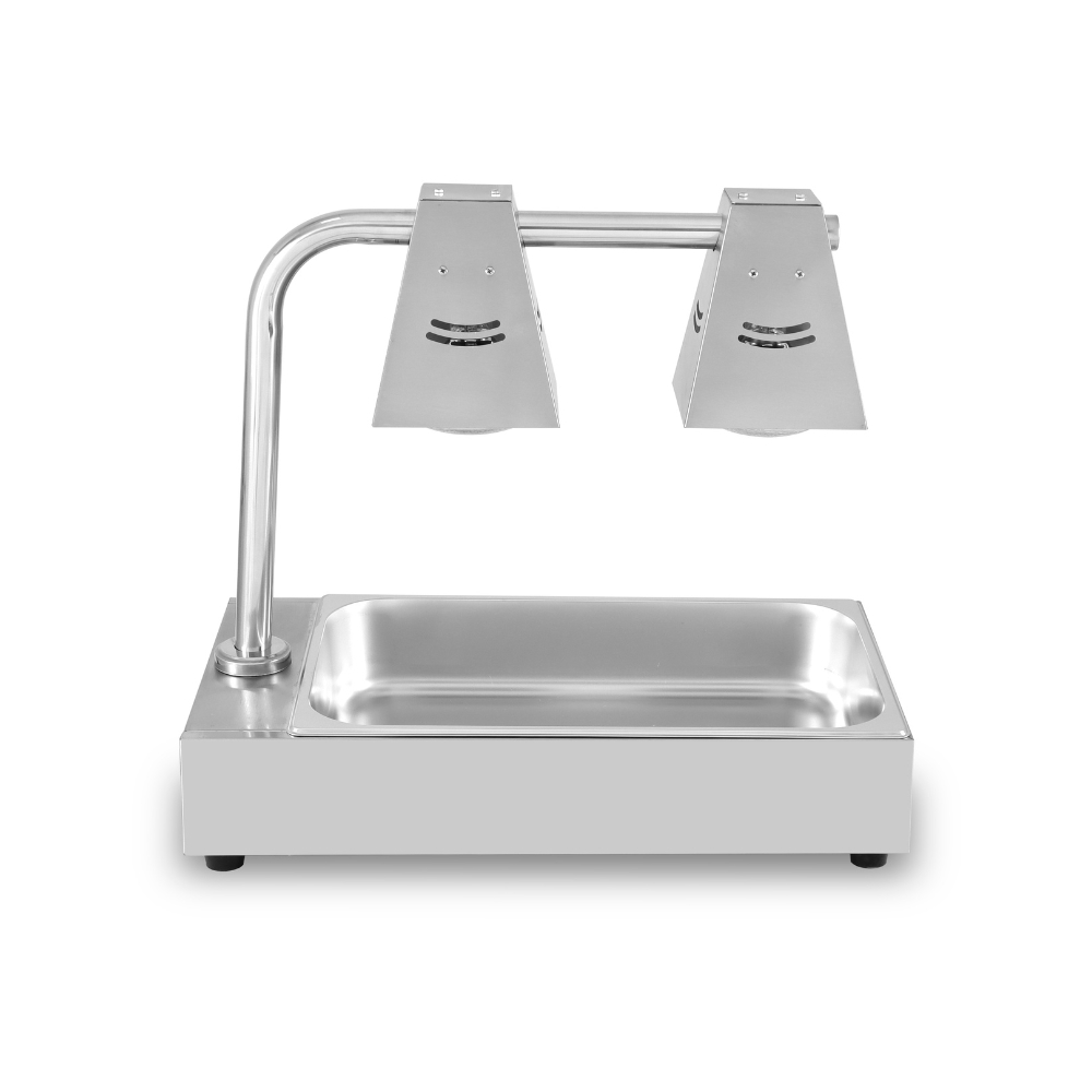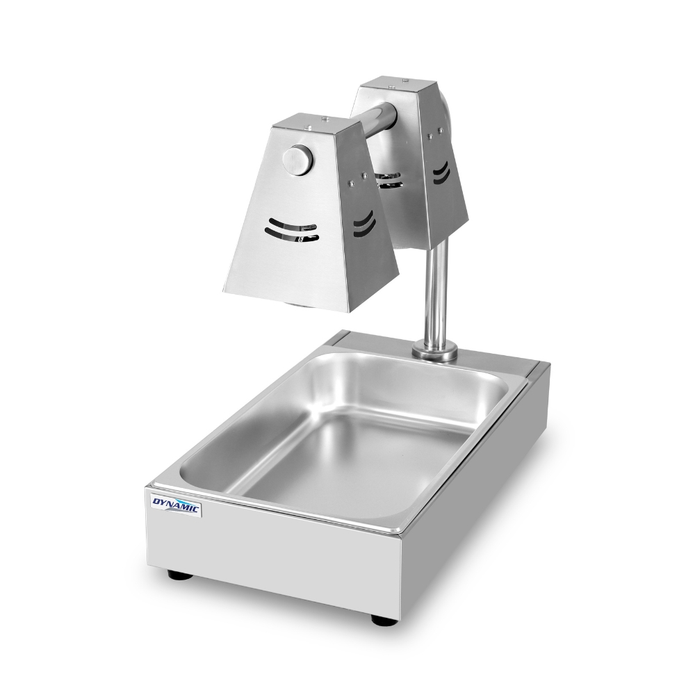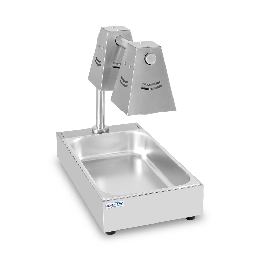 Με 2 λάμπες θερμότητας και με δοχείο GN1/1 διαστάσεων 65mm με πάχος 0,7mm.