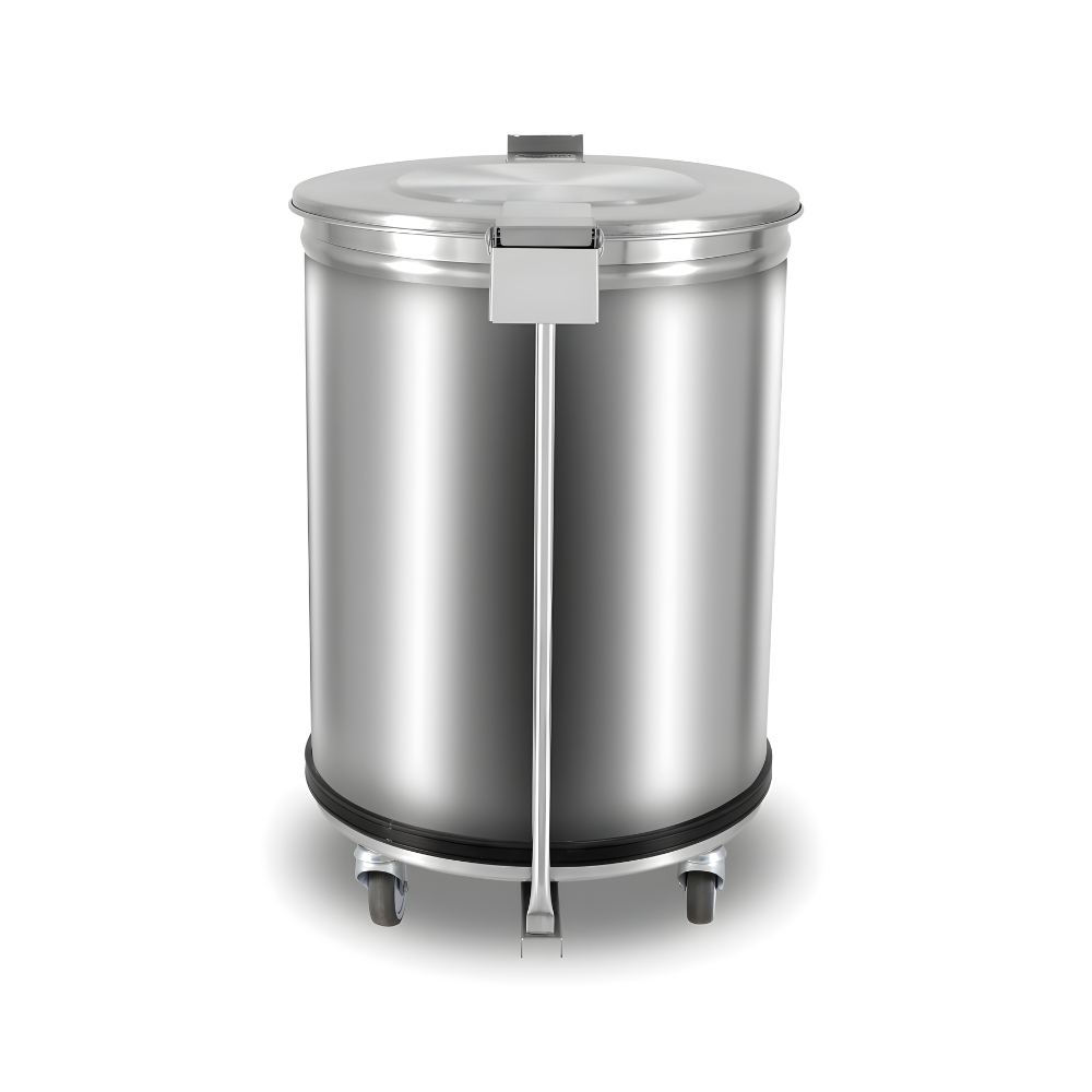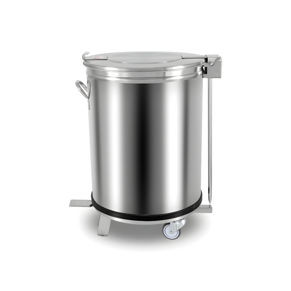 Επαγγελματικός Κάδος Ιnox 50Lt με πεντάλ και ρόδες για την διαχείριση των σκουπιδιών στις επαγγελματικές κουζίνας, στα καταστήματα υγειονομικού ενδιαφέροντος, στην εστίαση και στην πώληση τροφίμων.