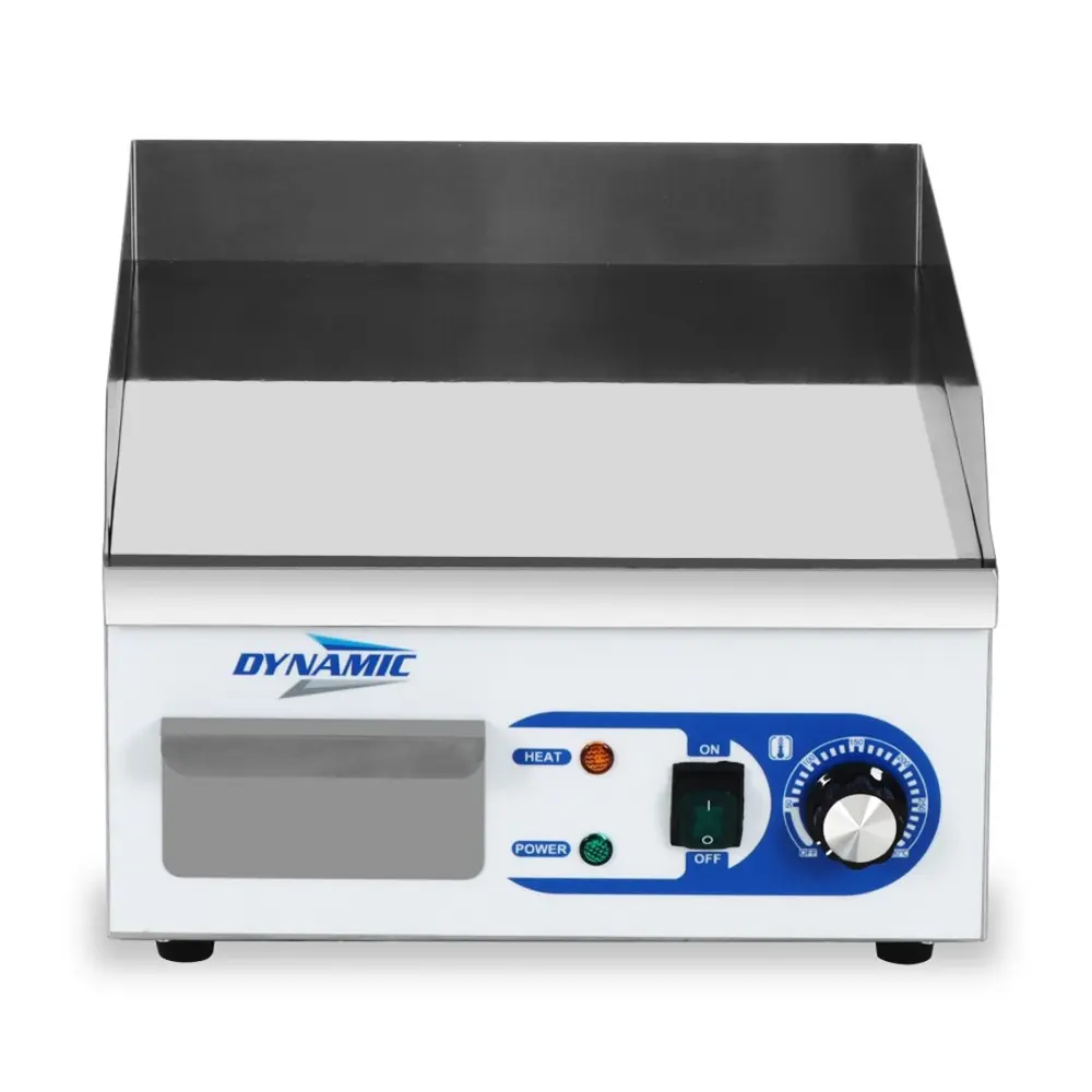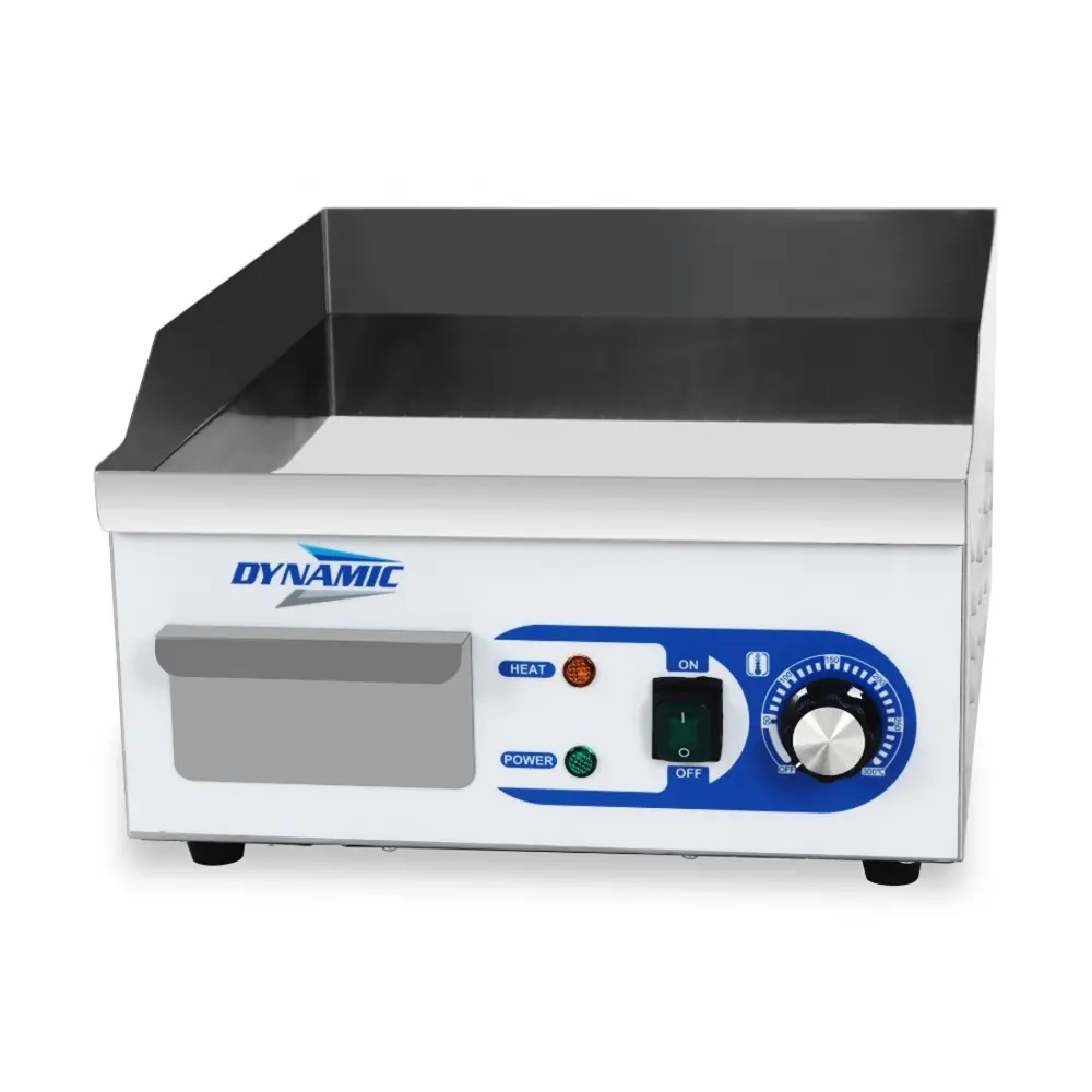 Ηλεκτρικό πλατώ χρωμίου με επιχρωμιωμένη πλάκα ψησίματος και ανοξείδωτη κατασκευή. Εύρος θερμοκρασίας από 50-300°C και θερμοστάτης στους 300°C. Διαθέτει συρτάρι συλλογής υπολειμμάτων. Το μηχάνημα είναι κατασκευασμένο από ανοξείδωτο ατσάλι, με κομψό σχεδιασμό και λεία επίπεδη επιφάνεια, όμορφο χρώμα και υλικό ανθεκτικό στη βρωμιά για εύκολο καθάρισμα. Το σύστημα υψηλής απόδοσης και η διατήρηση της απαιτούμενης θερμοκρασίας, εξασφαλίζει ευκολότερο μαγείρεμα.