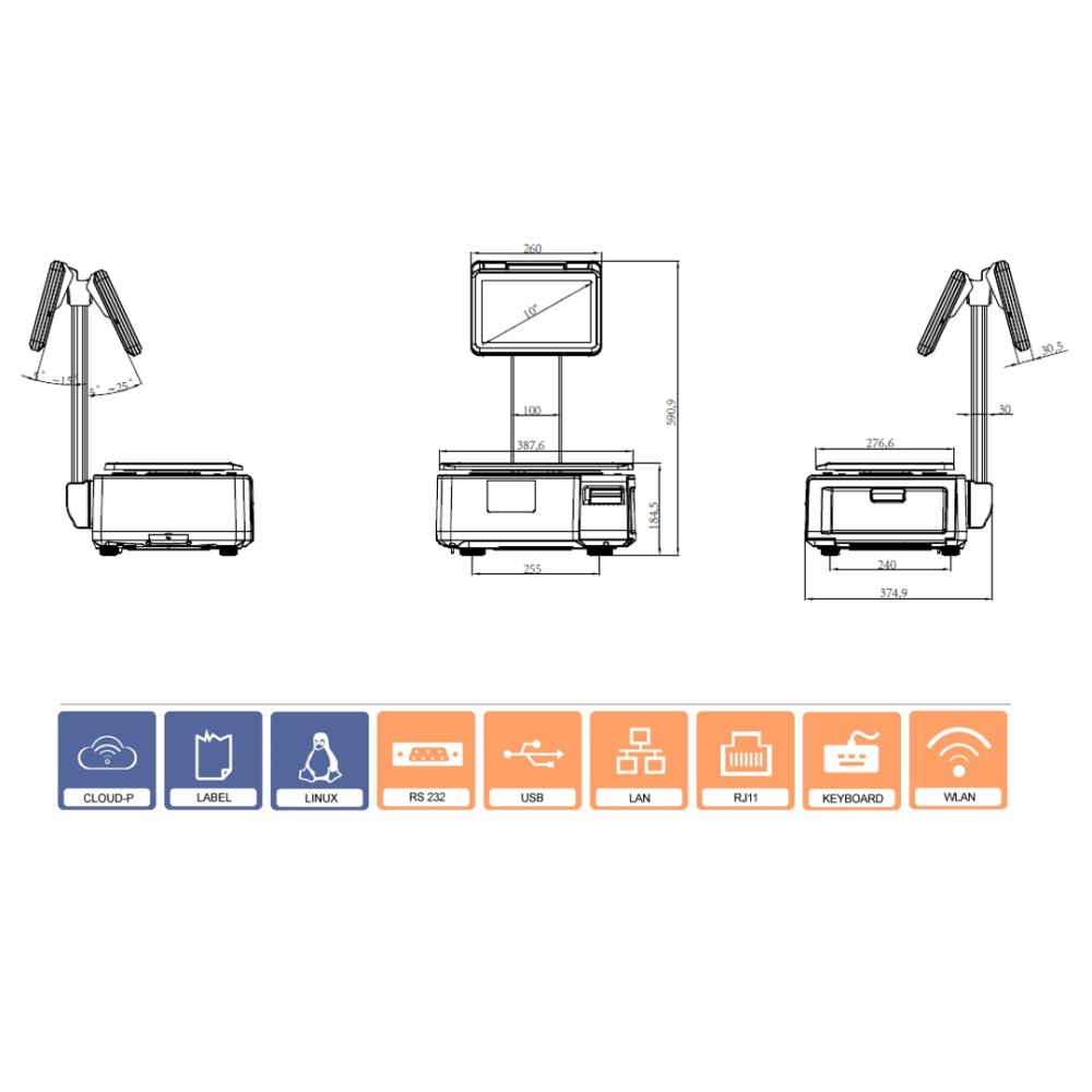 - Επιπλέον χαρακτηριστικά Ζυγών: Ανάλυση 1366x768 px, Θερμοκρασία λειτουργίας -10°C ~ 40°C, Τροφοδοσία AC 100-240V 50/60Hz, Πιστοποιητικά CE, OIML, NTEP