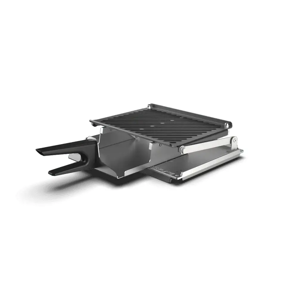 Non-stick aluminum plate with double surface (flat and ribbed) and slotted top plate. Equipped with a special spatula for quickly placing and removing food on the press. Offers maximum versatility in sandwich marking: on one side or on both.