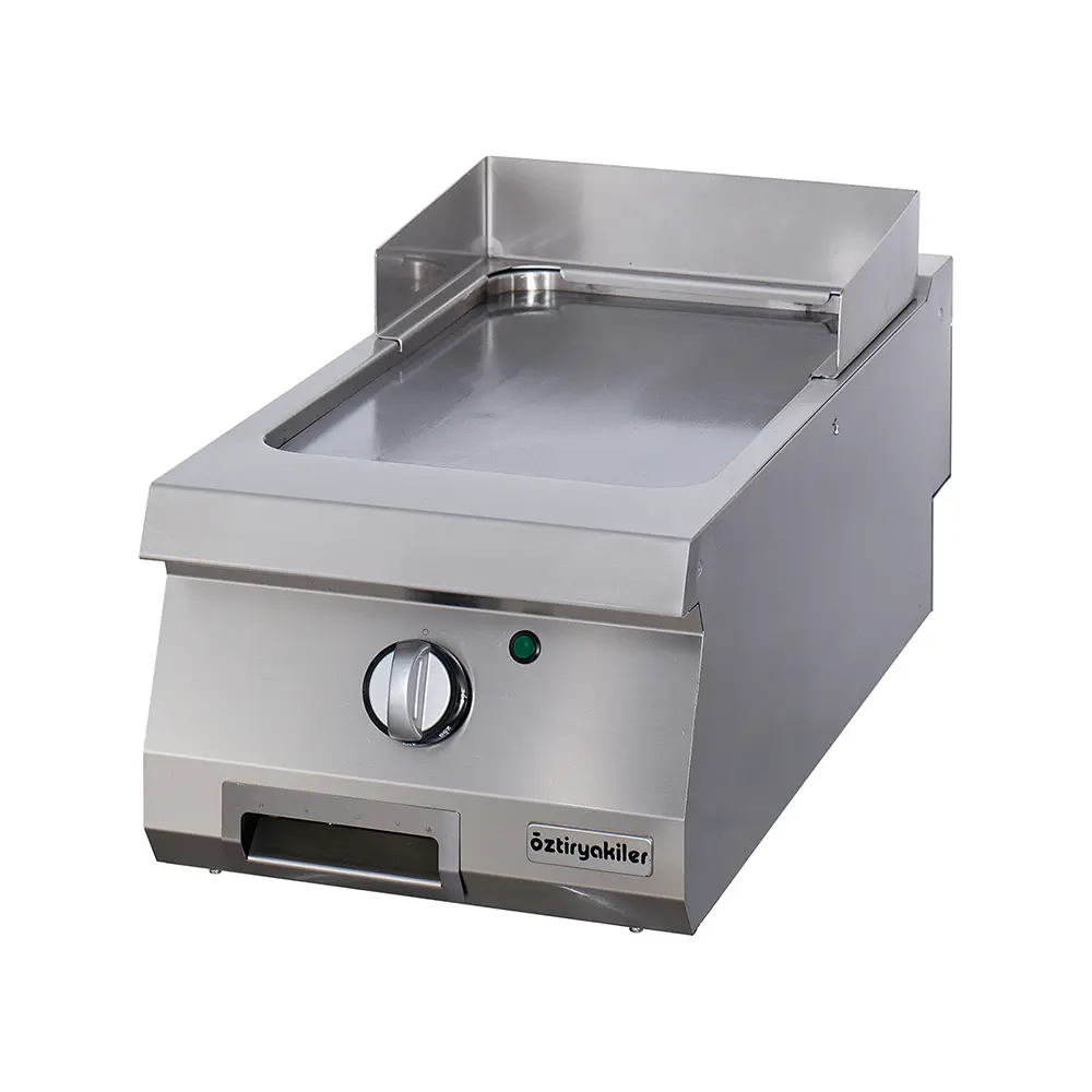 • Πλάκα από μαλακό χάλυβα πάχους 15 mm με φινίρισμα satin ή επίστρωση hard chrome, τοποθετημένη σε υδατοστεγή εσοχή για πιο αποδοτικό μαγείρεμα