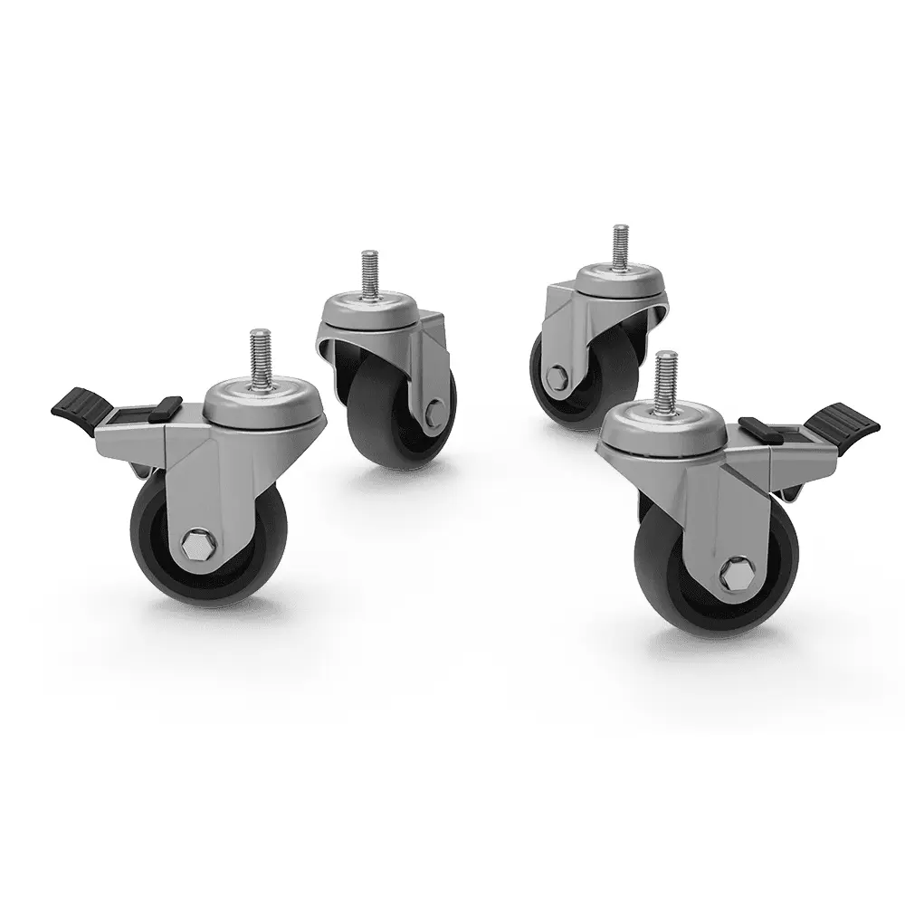 - They make cleaning easier. The kit includes 2 wheels with a brake, 2 wheels without a brake, and wall-mounting chains.