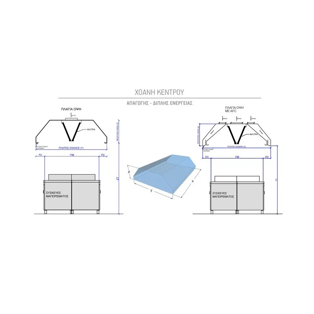 - Διάμετρος και αριθμός οπών απαγωγής και προσαγωγής αέρα τυποποιημένες αλλά και κατόπιν συνεννόησης