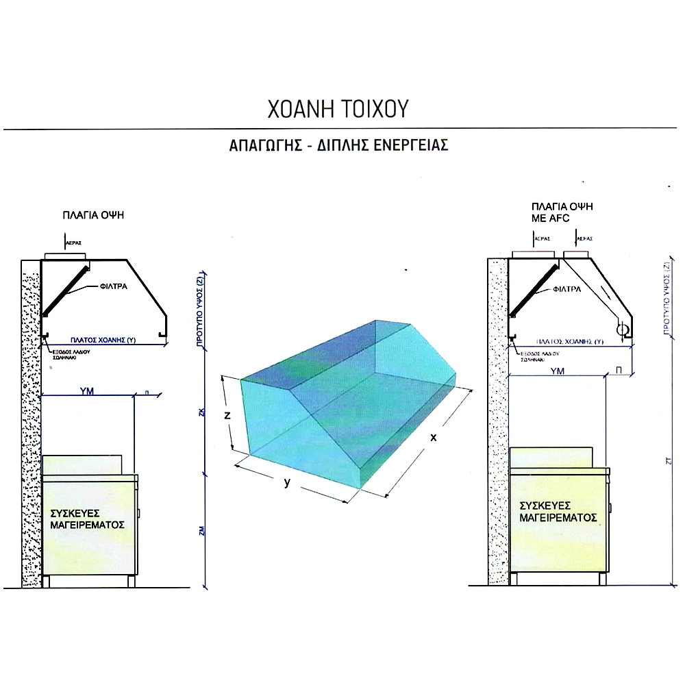 • Διάμετρος και αριθμός οπών απαγωγής και προσαγωγής αέρα τυποποιημένες αλλά και κατόπιν συνεννόησης