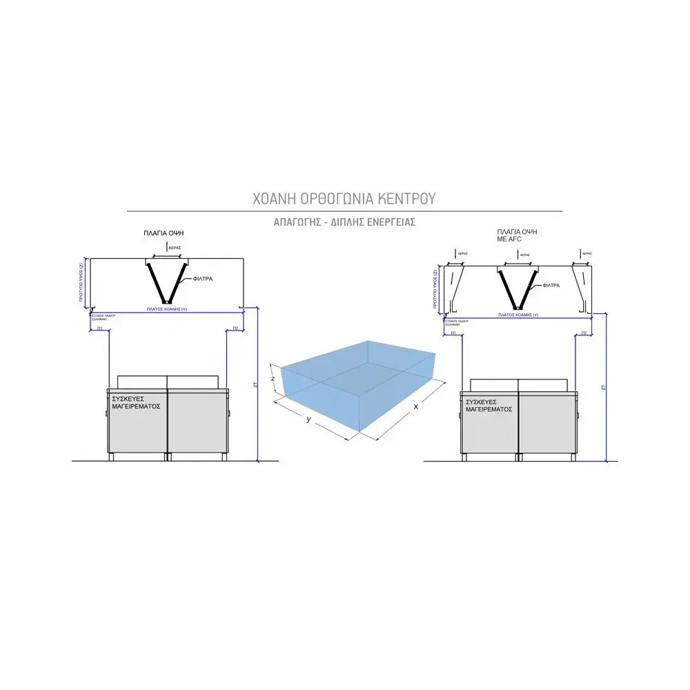 - Διάμετρος και αριθμός οπών απαγωγής και προσαγωγής αέρα τυποποιημένες αλλά και κατόπιν συνεννόησης