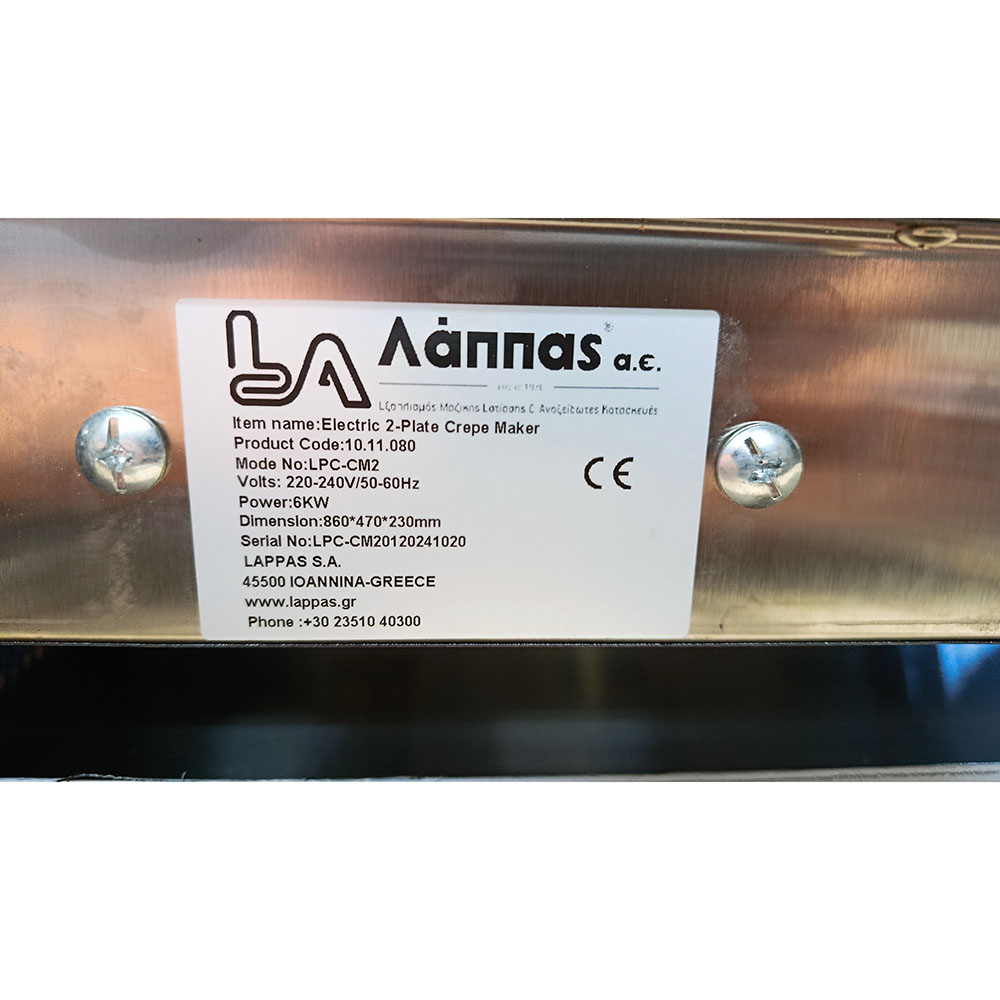 Κρεπιέρα Διπλή Ηλεκτρική Ø40cm LAPPAS LPC-CM2 (Εκθεσιακό κομμάτι)