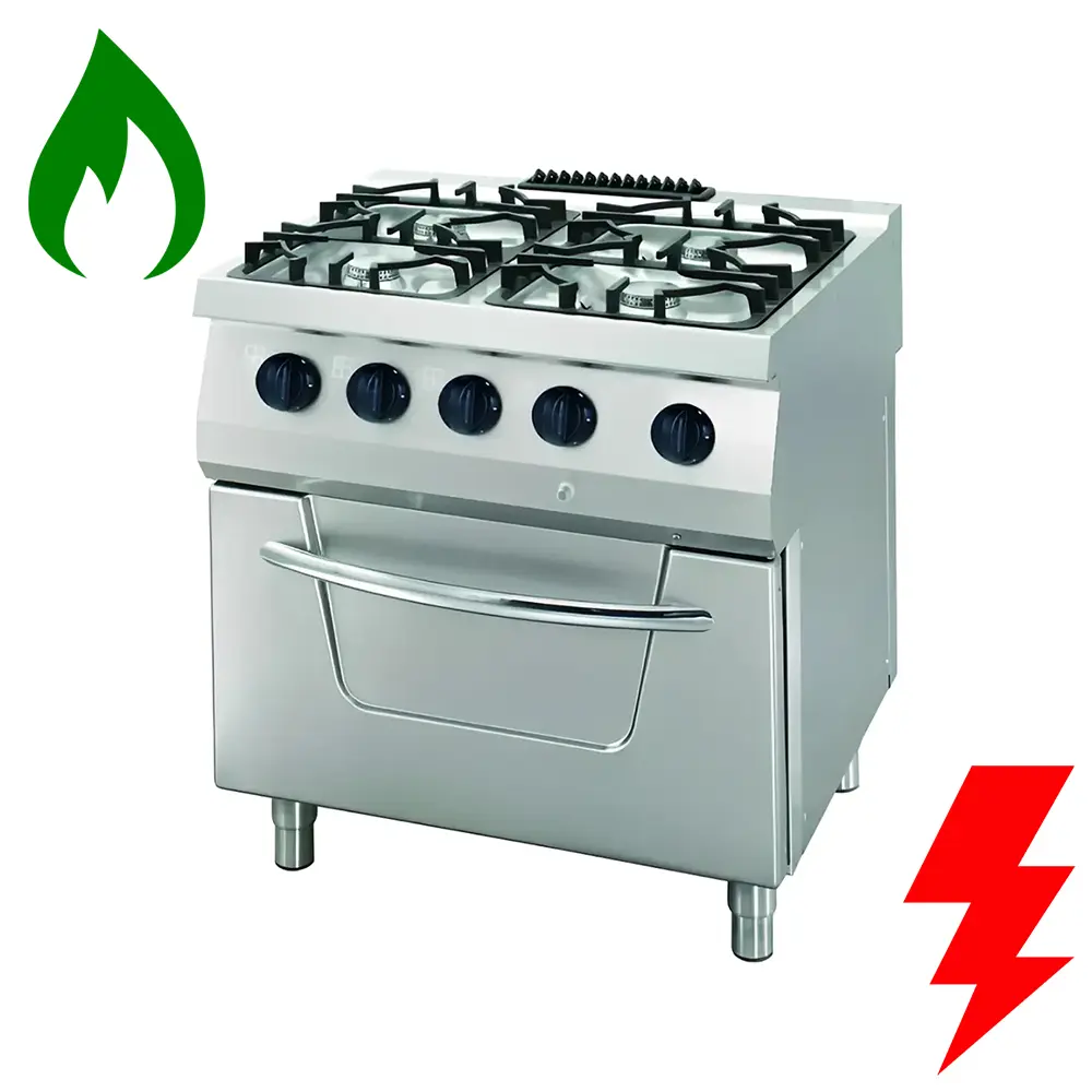 - Επιλογή από 4 ανοιχτούς καυστήρες σε συνδυασμό με ηλεκτρικό στατικό φούρνο ή στατικό φούρνο αερίου με πυροκροτητή πιεζοηλεκτρικής ανάφλεξης
