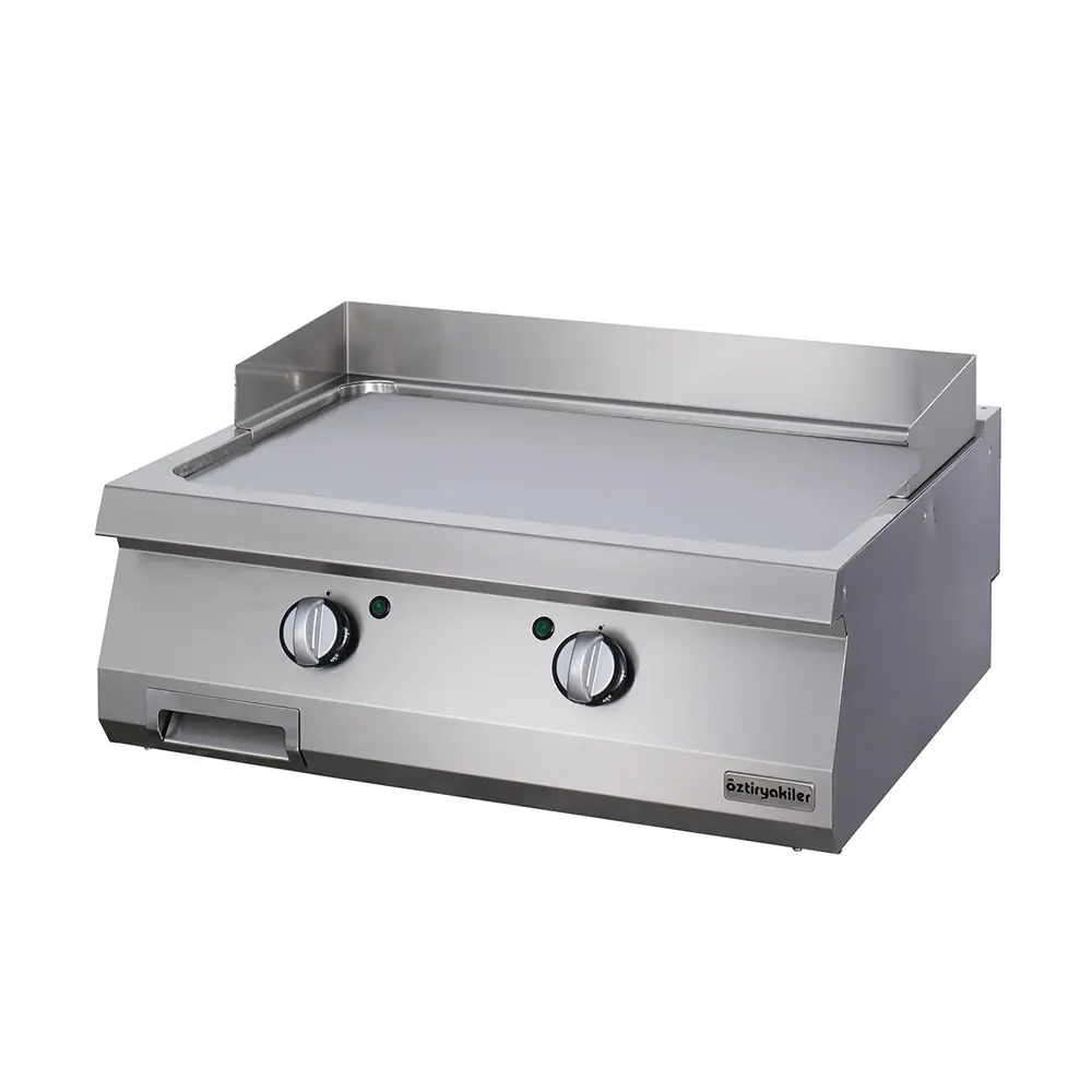 - “Satin finish” or “hard chrome coated” 15 mm thick mild steel plate contained in a watertight recess for more efficient cooking