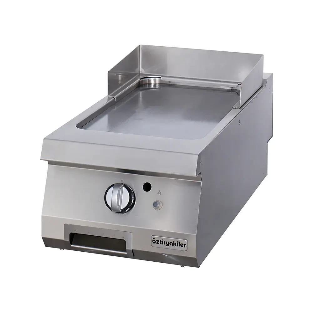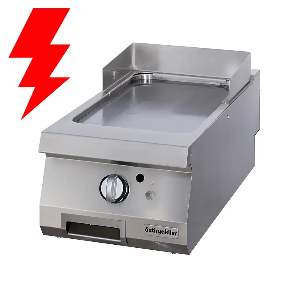 • “Satin finish” or “hard chrome coated” 15 mm thick mild steel plate contained in a watertight recess for more efficient cooking