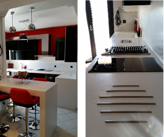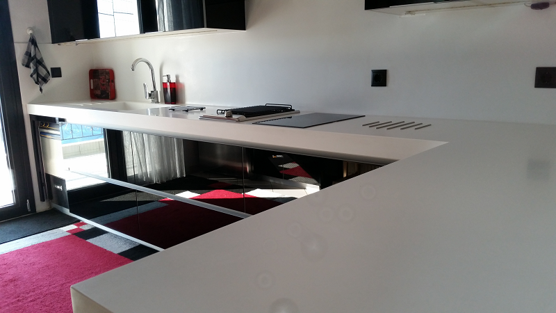 Μοντέρνα κουζίνα Συνδυασμός Γυαλιού - Corian - Ανοξείδωτου
